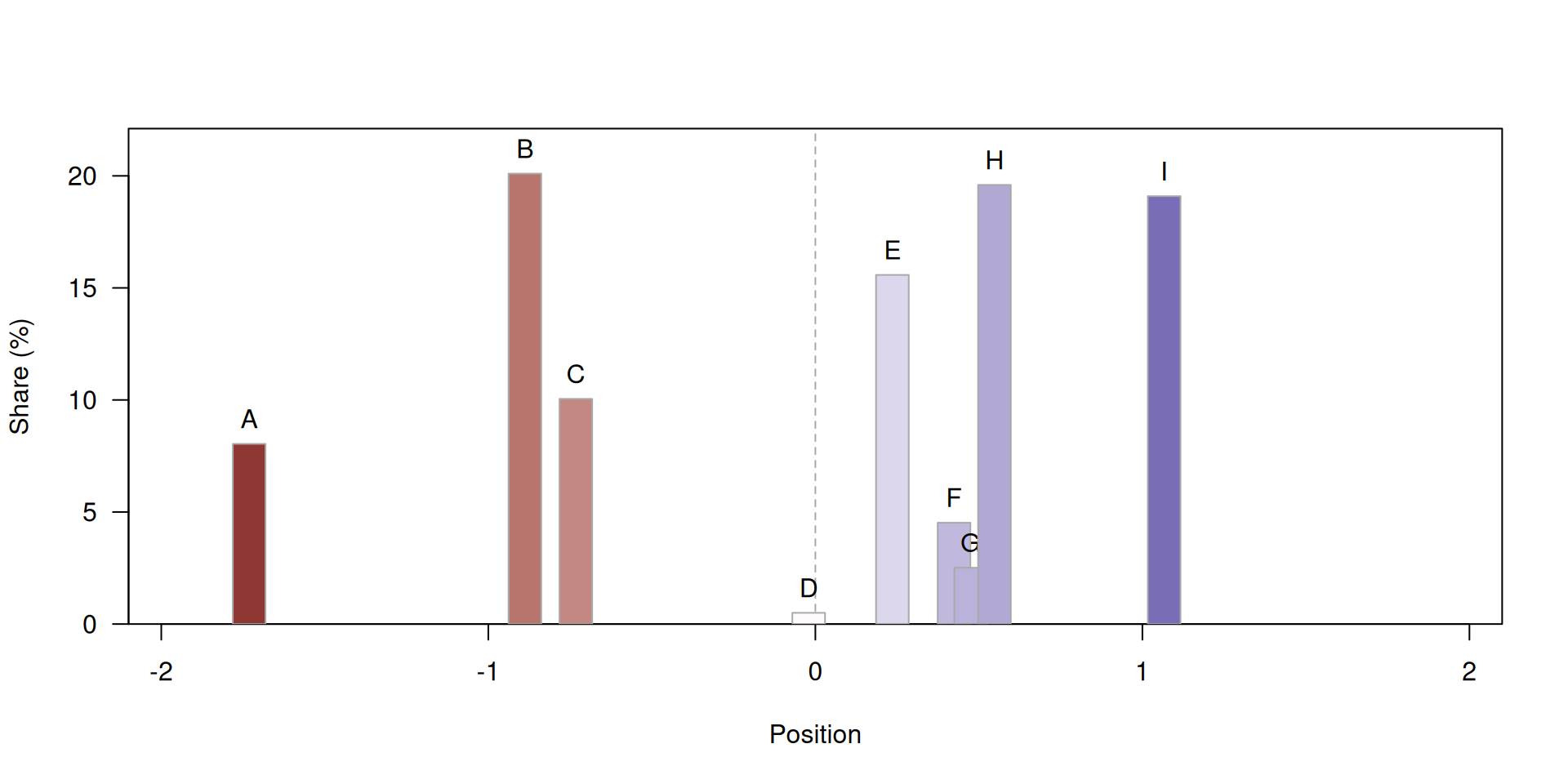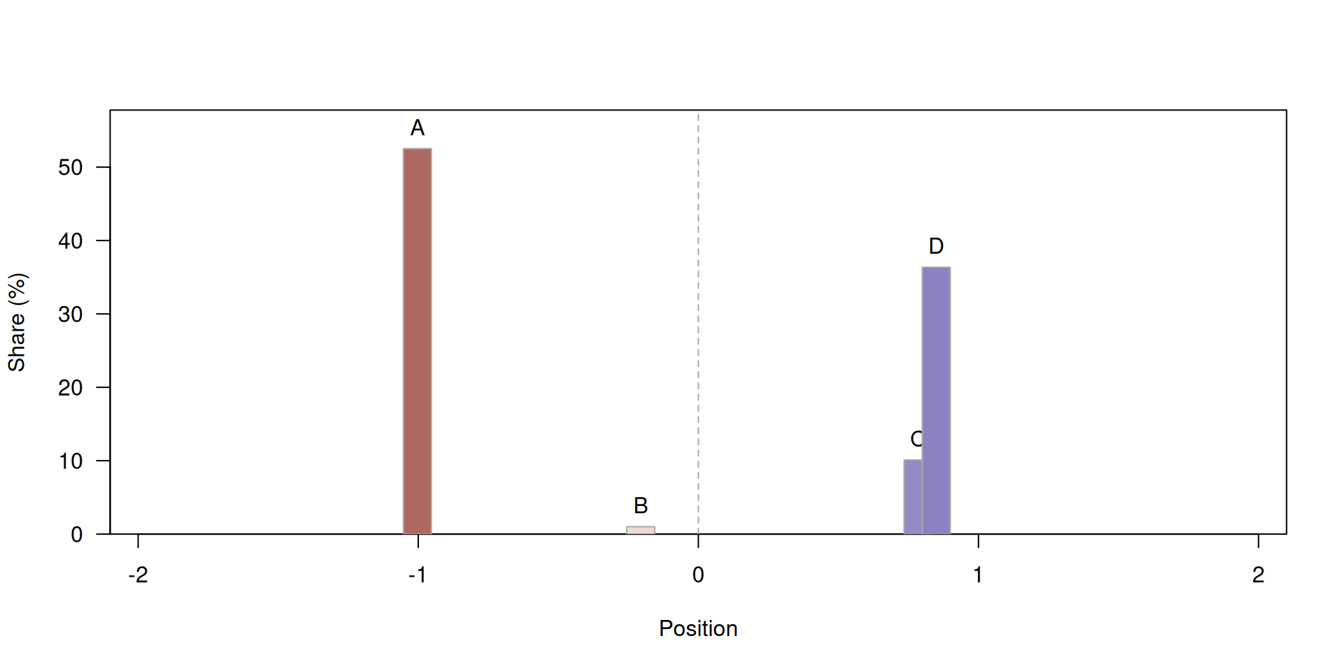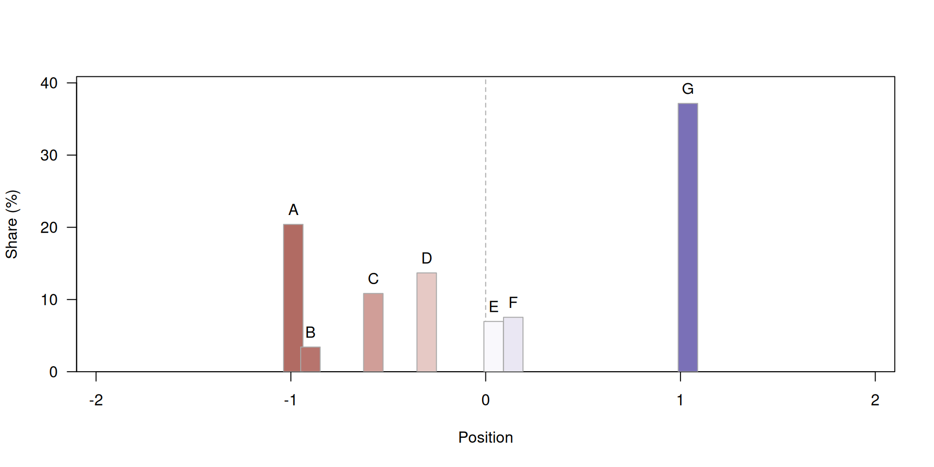 “Parties are repulsed away from the share-weighted average position of all parties larger than them”